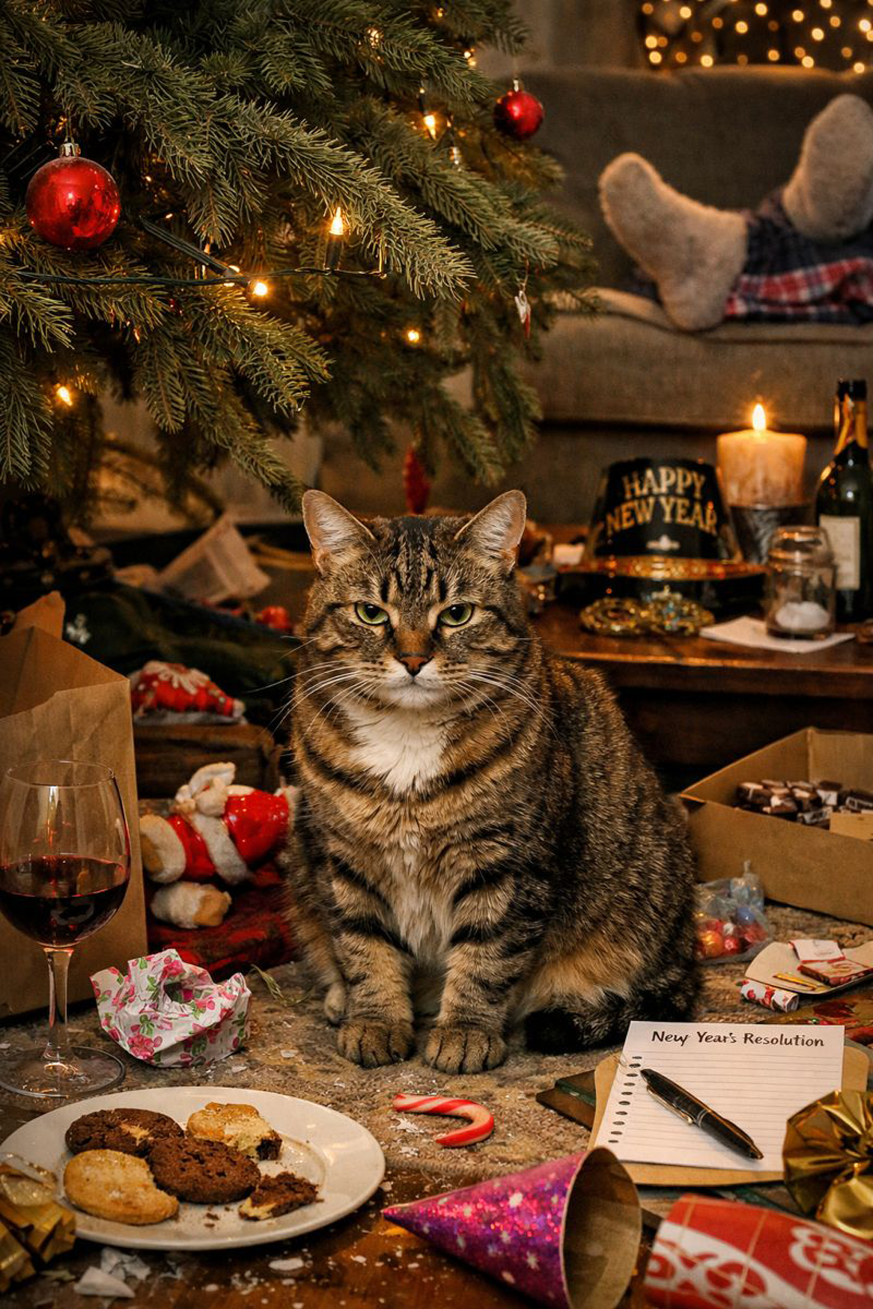 The days after Christmas and before New Year’s exist in a strange limbo. Time has no meaning. Pants are optional. Every surface smells faintly of ham. And to your cat, this is the most fascinating—and deeply disappointing—week of the entire year.