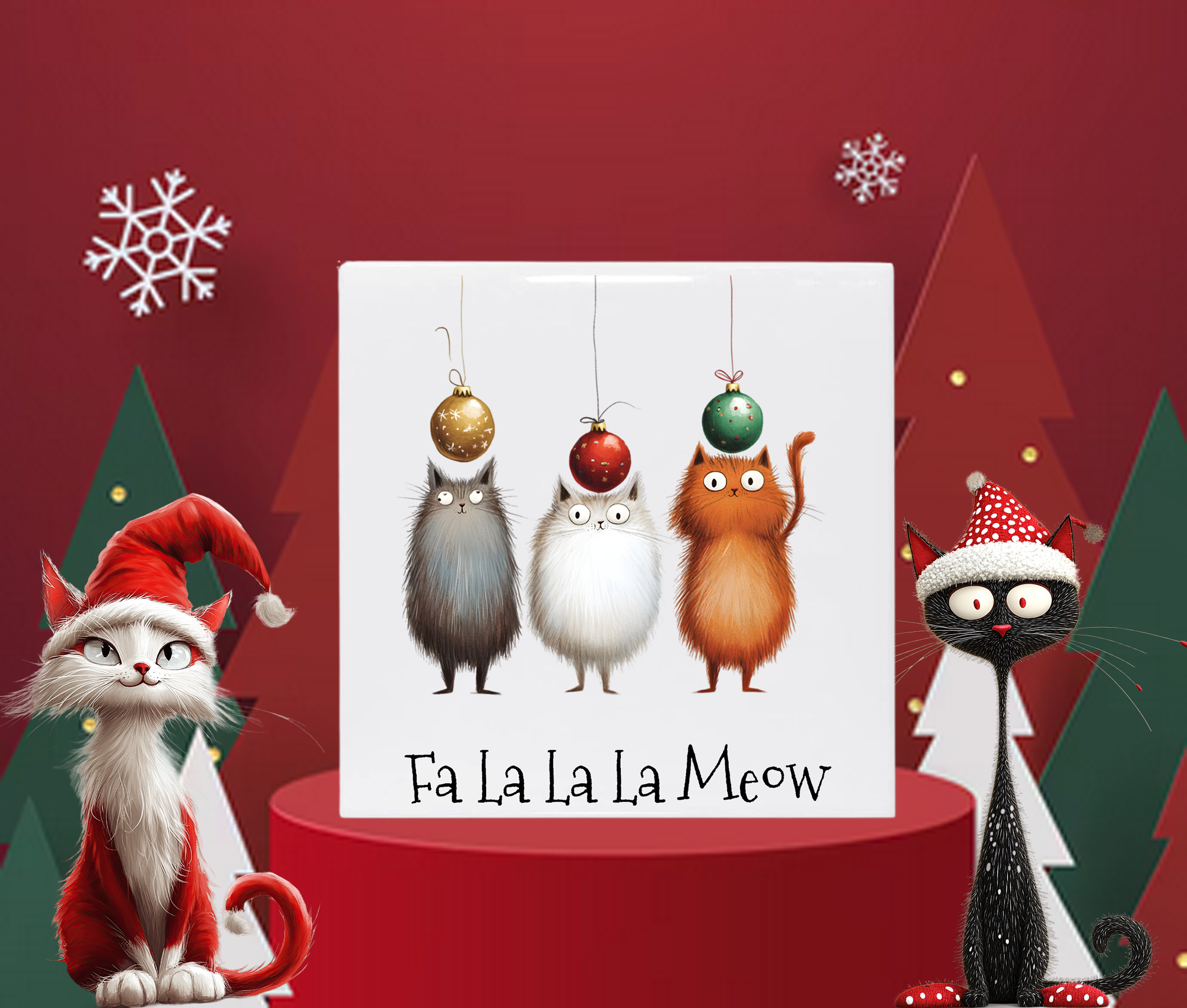 Deck the halls, jingle the bells, and for the love of catnip… try not to lose your holiday sanity. This fabulously festive decorative tile brings all the cheer with none of the judgment (okay, maybe just a smidge — but it’s holiday-appropriate judgment).