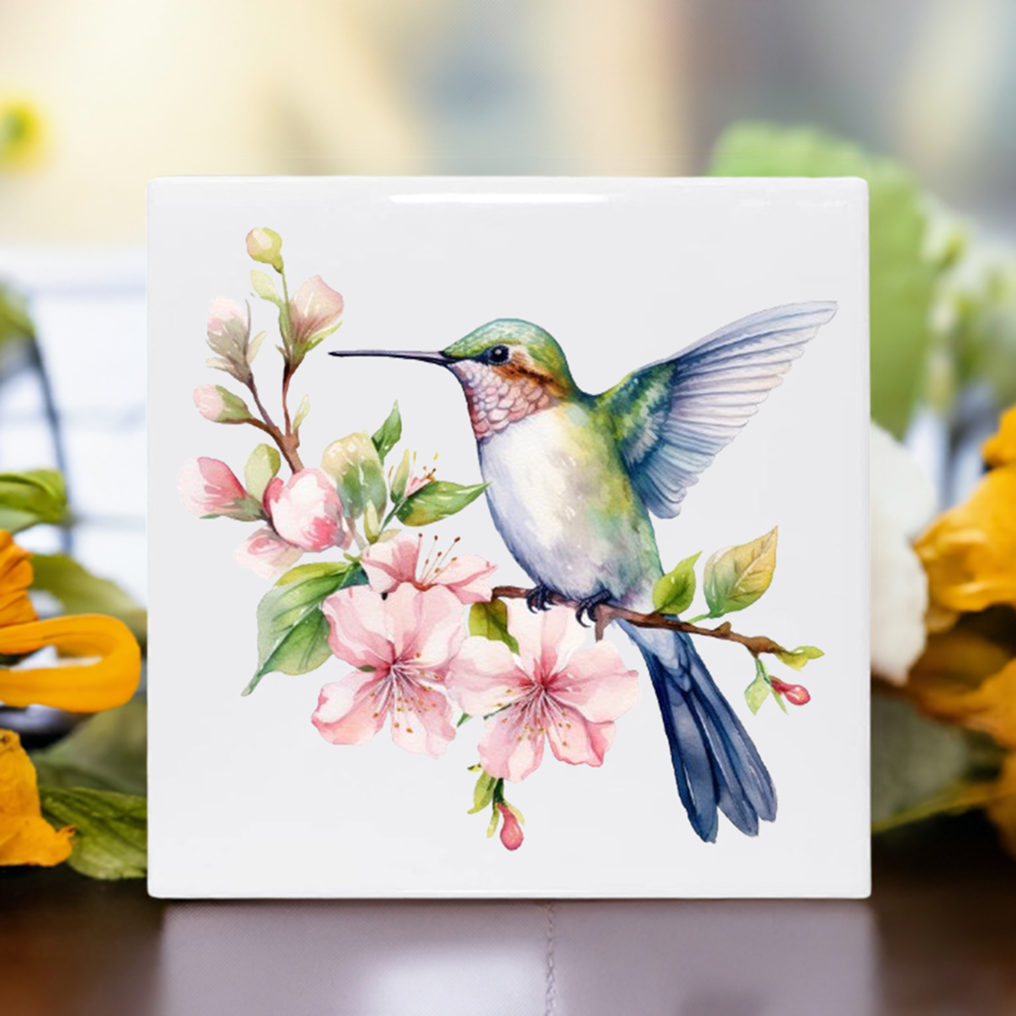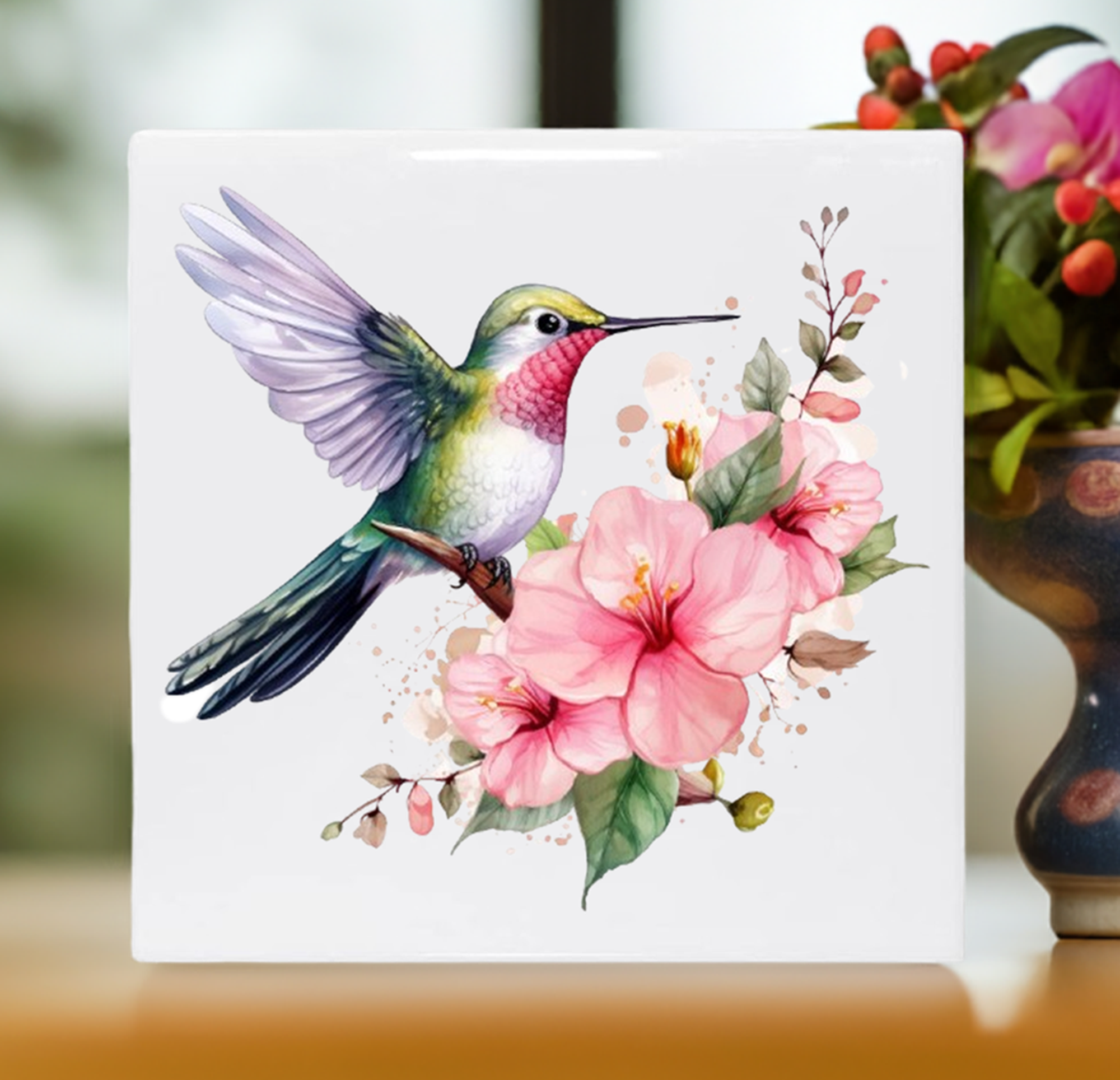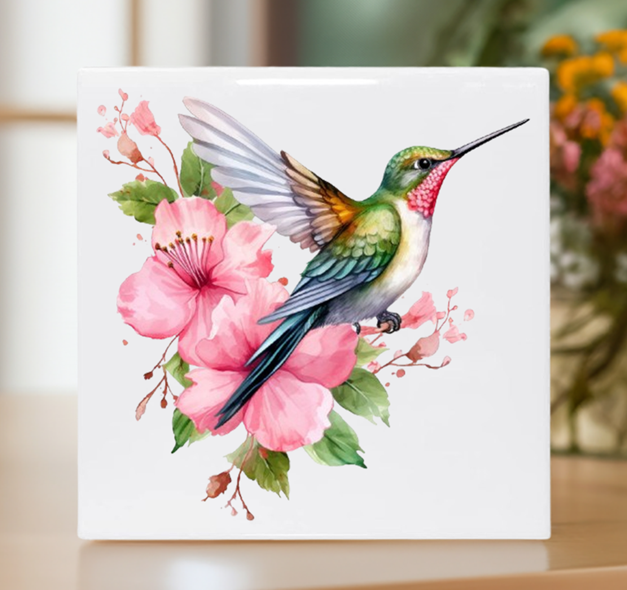 Perfect as wall art, backsplash accents, or heat-resistant trivets for your kitchen table, each piece is a tiny celebration of movement, nature, and “Did you see that?!” energy. High quality white, glossy ceramic sublimated prints built to last, they’re equal parts functional and fabulous—just like a hummingbird in full zoom.