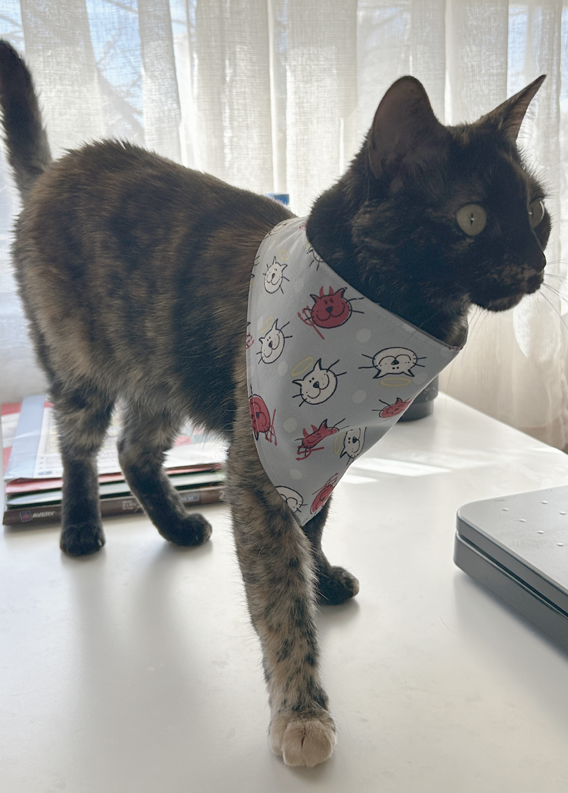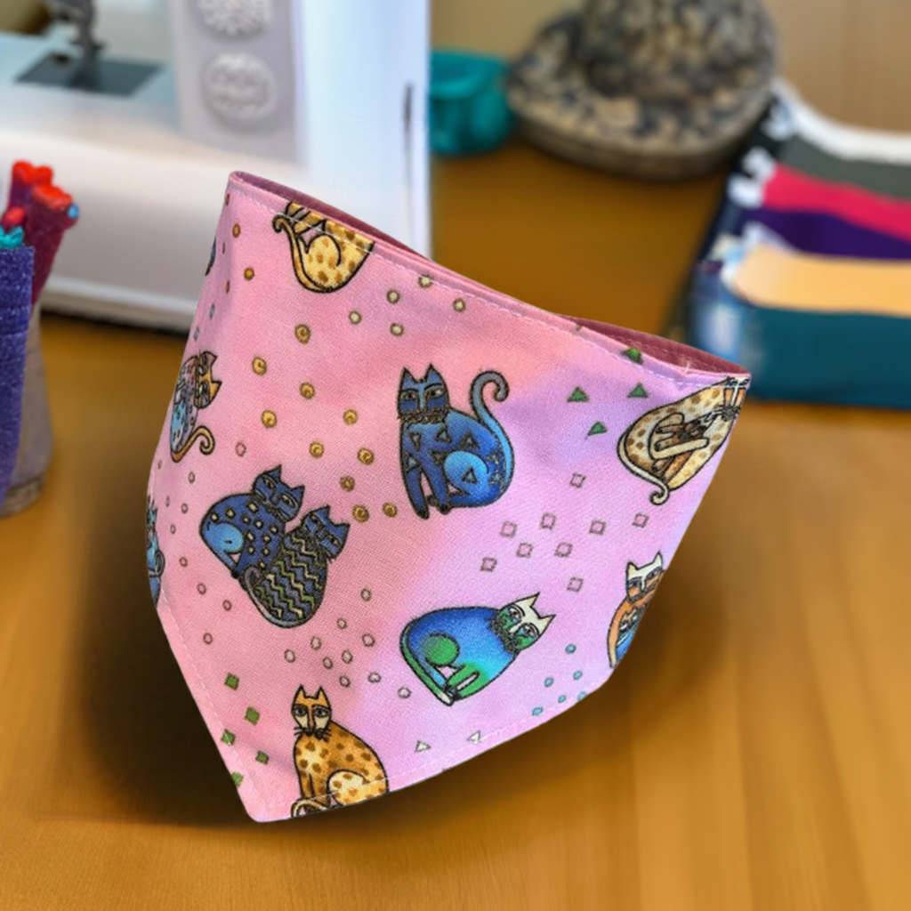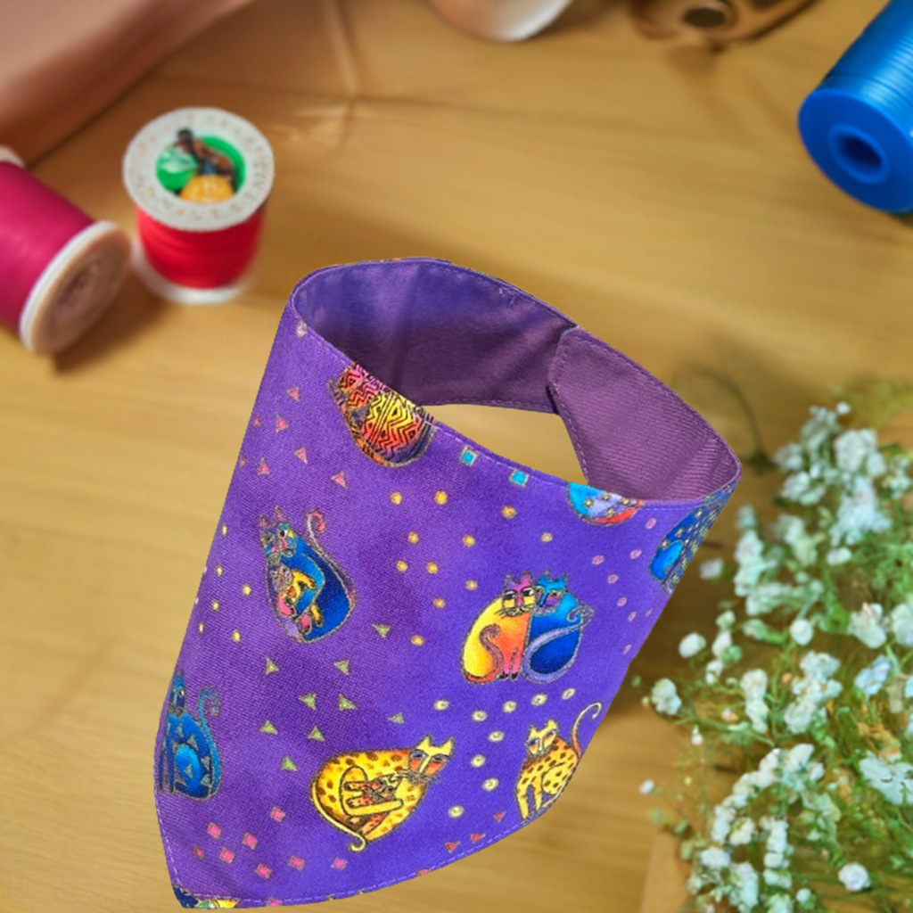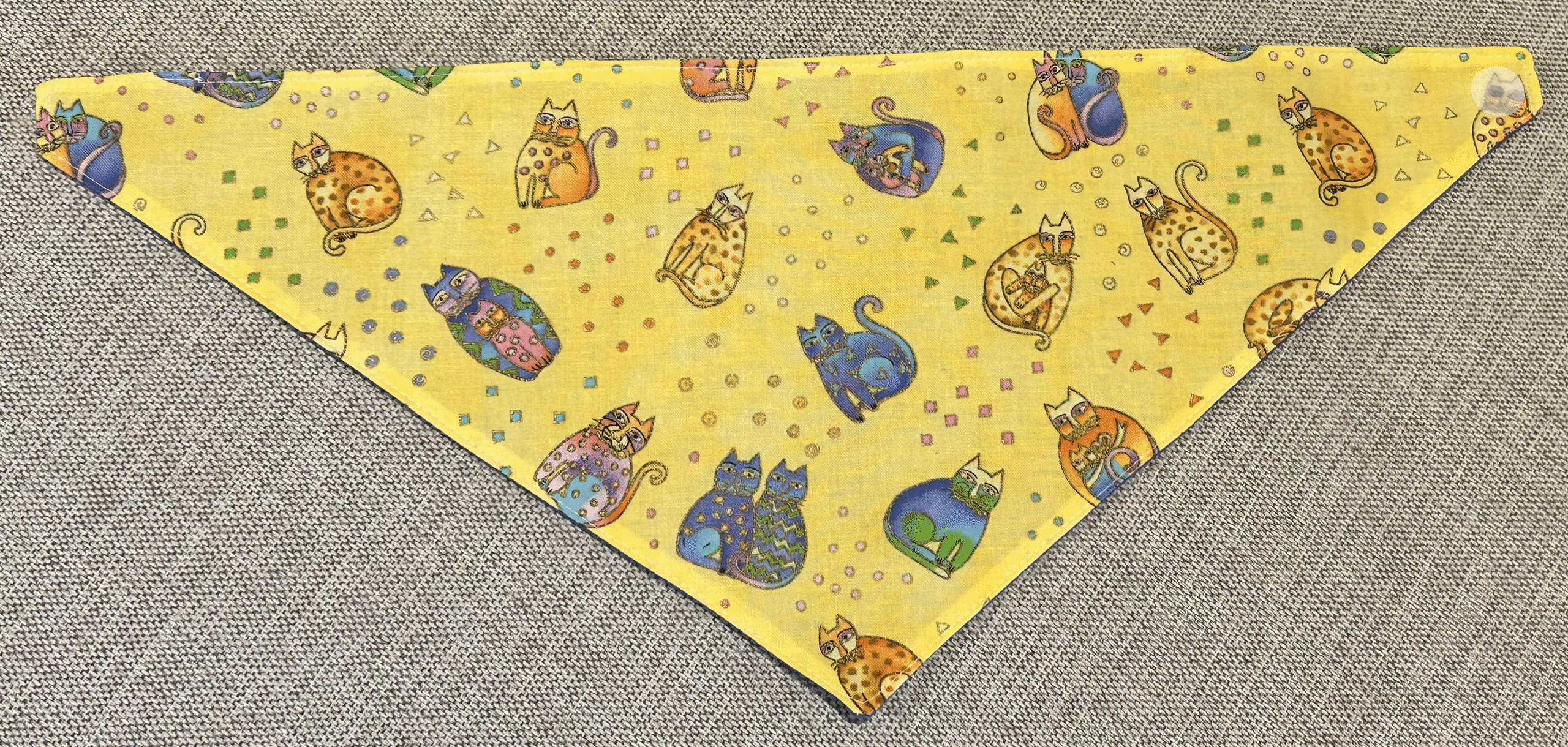 The Laurel Burch Bandanas—for cats who refuse to blend in. Bursting with color, whimsy, and feline fabulousness, these limited-edition accessories turn your pet into walking art. Handmade in Albuquerque with 100% Laurel Burch prints cotton, they’re soft, safe, and machine washable—because even divas shed. Whether your kitty’s lounging in luxury or plotting your downfall, this bandana says, “I’m not basic, I’m Burch.”