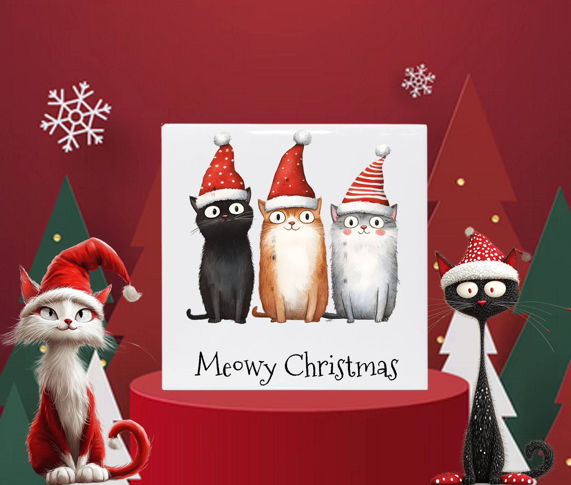 Deck the halls — and scare the elves. This festive ceramic tile is perfect for cat lovers, holiday cynics, and anyone who believes “fa-la-la-la-meh” is an acceptable emotion. Hang it up, prop it on a shelf, or gift it to someone who needs a little more sass under their mistletoe. 🎄😼