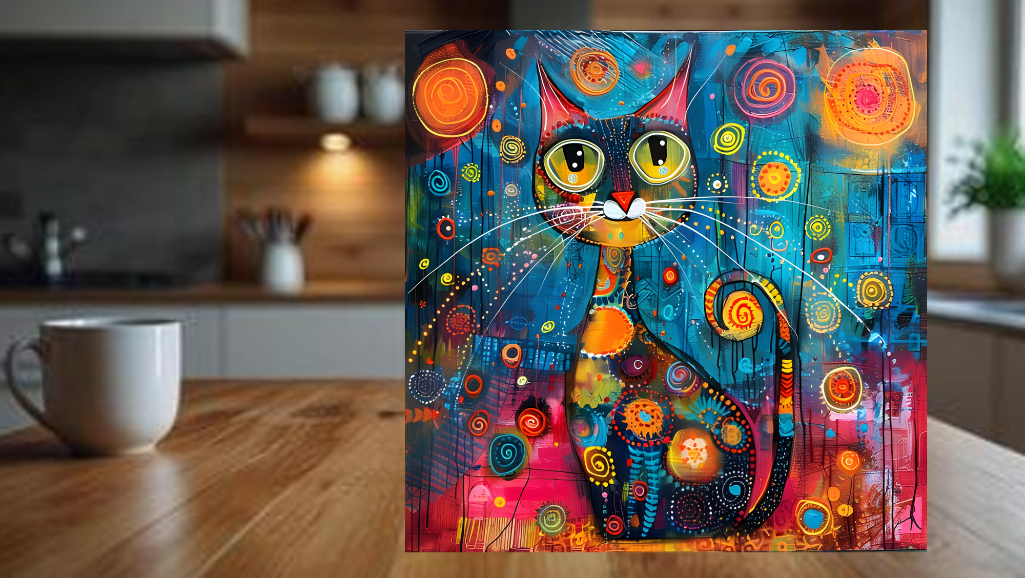 Add a pop of feline drama to your space with the Mosaic Kitty Tiles (4 different designs). Each 6″ ceramic masterpiece delivers purr-sonality, sass, and just enough attitude to remind guests who’s boss (spoiler: it’s still your cat). Heat-resistant, scratch-safe, and comes with a free cat toy—because you know who really runs this household.