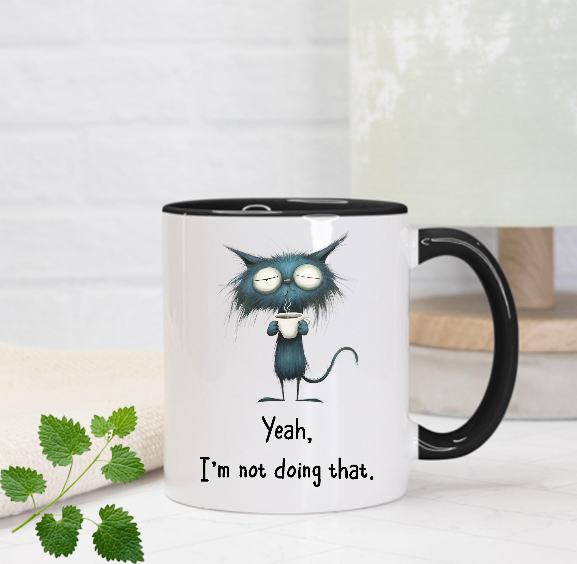 Your new favorite boundary enforcer. Two-tone ceramic sass made in Albuquerque, available with a heart-shaped or standard handle. Dishwasher and microwave safe, because even refusal should be convenient. Each mug is handmade to order using sublimation witchcraft for lasting snark. Comes with a free cat toy — because your feline already knows the power of “no.” Printed on both sides.