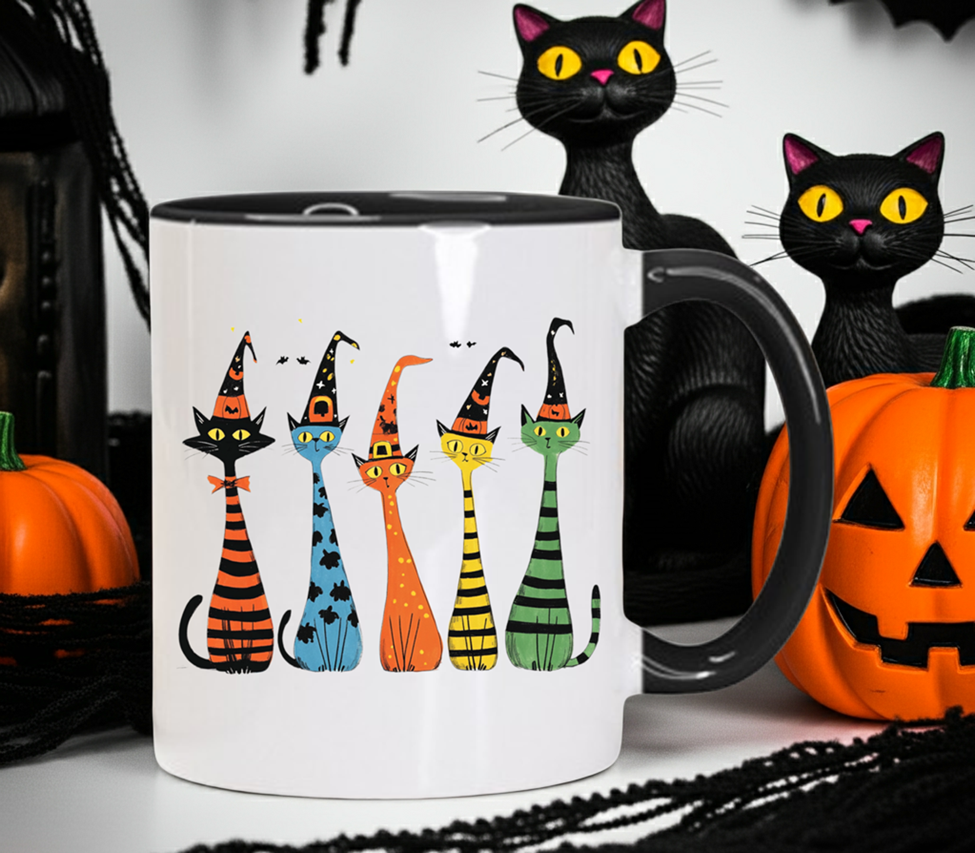 Meet the Spooky Cats In Hats 3 Mug – the perfect companion for anyone who likes their coffee dark, their cats judgmental, and their mornings mildly haunted. Crafted in Albuquerque with sublimation magic so your creepy-cute feline never fades, this mug’s two-tone design hides your caffeine crimes while whispering, “I woke up for this?” Dishwasher safe, microwave safe, and 100% cat-approved (probably). Printed on both sides.