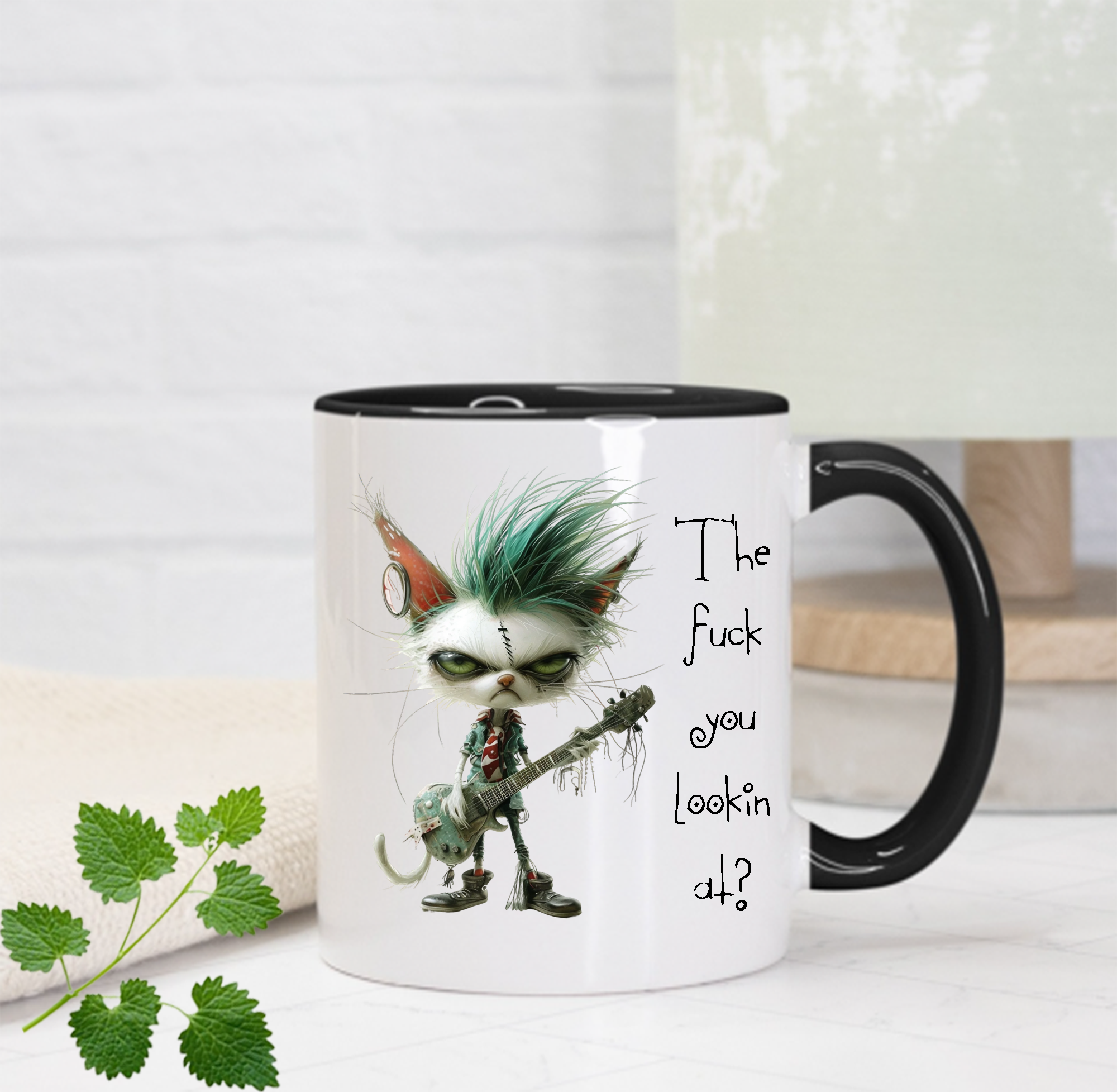 Meet the What The Fuck Mug, your new morning mantra in ceramic form. Handcrafted in Albuquerque with a snarky cat’s blessing, this two-tone mug says everything you’re thinking before caffeine makes it polite. Available with a standard or heart-shaped handle for whatever kind of “fuck” you’re feeling today. Dishwasher safe, microwave safe, and guaranteed to make coworkers question your HR file. Printed on both sides.